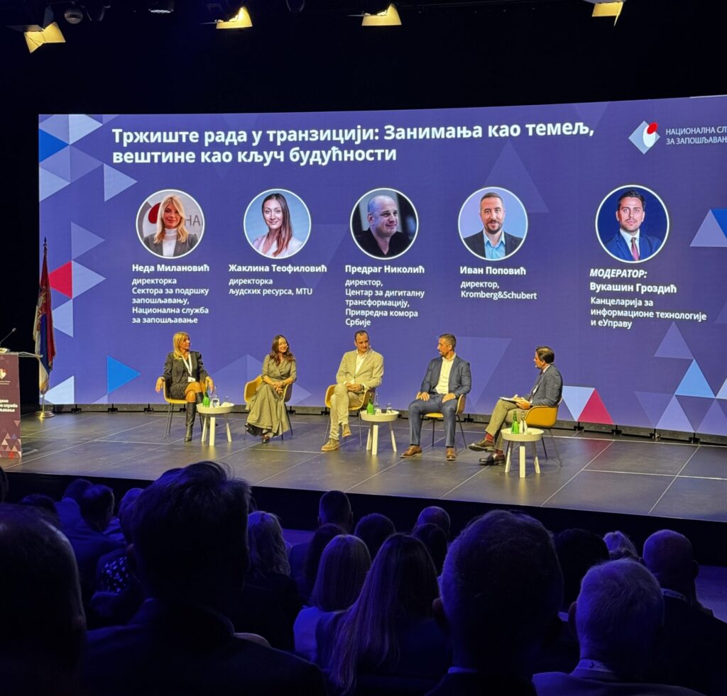Centralni deo događaja bila je panel diskusija pod nazivom „Tržište rada u tranziciji: Zanimanja kao temelj, veštine kao ključ budućnosti“, koja je otvorila važna pitanja o promenama u strukturi zanimanja, potrebama poslodavaca i razvoju relevantnih veština. U panelu su učestvovali: