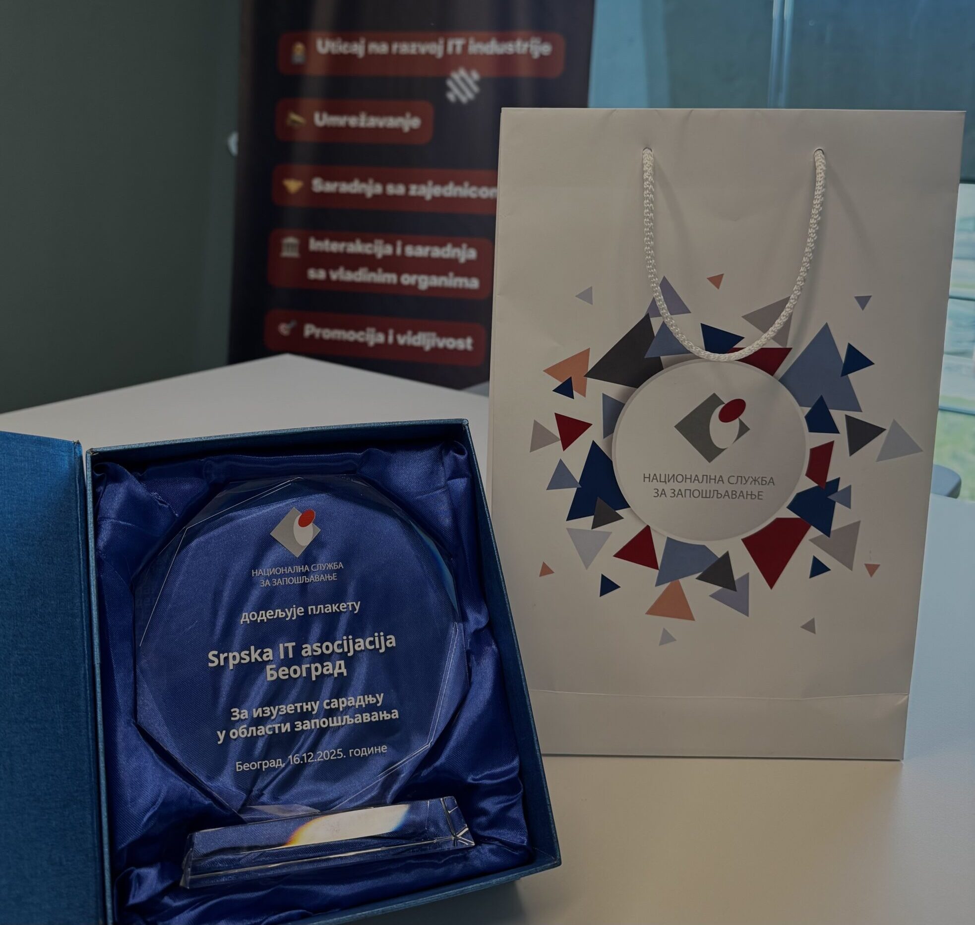 Nakon panel diskusije usledila je dodela zahvalnica i nagrada za izuzetnu saradnju u oblasti zapošljavanja. Srpska IT asocijacija našla se među 20 dobitnika plakete, čime je prepoznat njen doprinos unapređenju zapošljavanja i razvoju IT sektora u Srbiji.